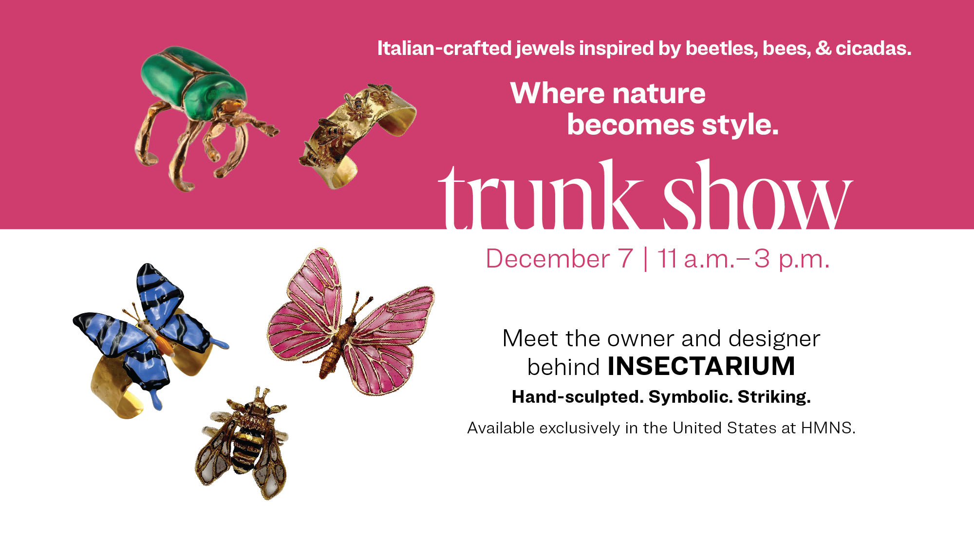 Meet artist Silvia Pavanello on December 7 in the Museum Store, and learn more about the process and passion that goes into each piece of jewelry. In the US, INSECTARIUM can be found exclusively at the HMNS Museum Store.