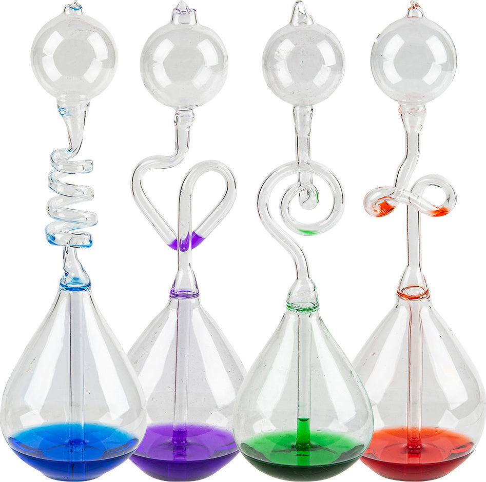 Hand Boilers are looped and twisted glass sculptures containing a liquid that will "boil" as heat is transferred from your bare hand. Simply hold the large bulb end in the palm of your hand and within minutes, your body heat will cause the liquid to rise. Once out of your hands, it takes a few minutes for the liquid to cool down and return to the large bulb. Pretty fascinating science toy and an excellent demonstration of energy transfer.