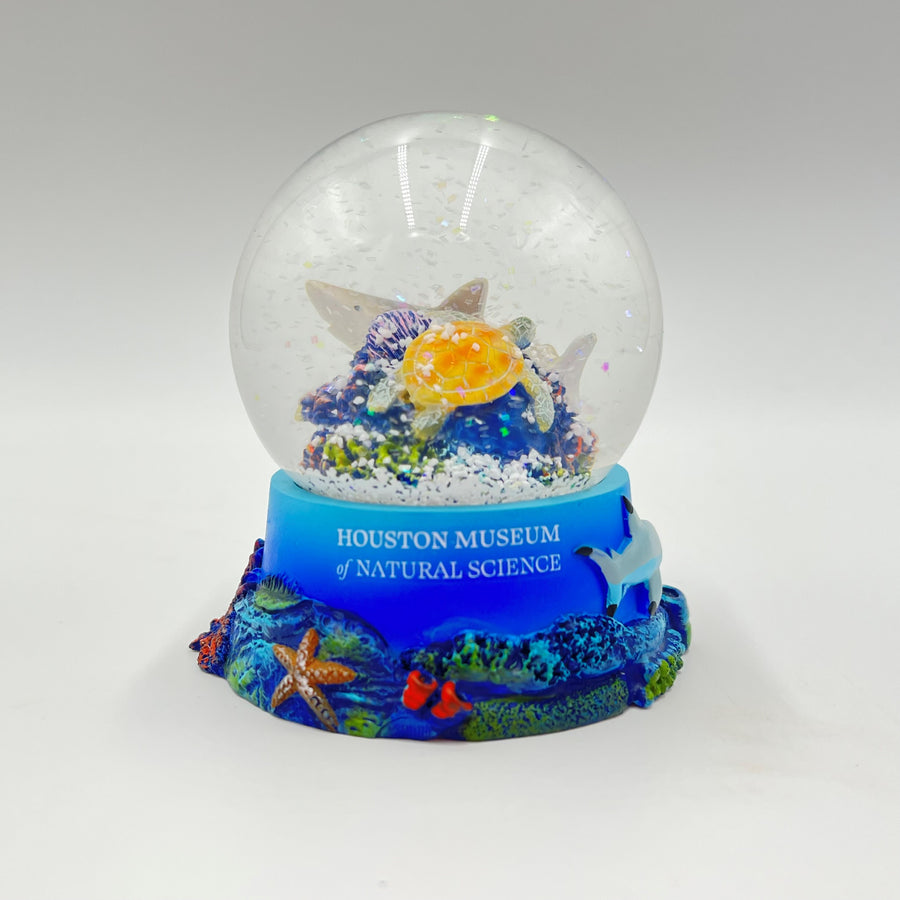Bring an underwater paradise to life with this unique Shark Snowglobe. Enjoy a peaceful snowing scene of a coral reef, complete with a swimming shark and a friendly sea turtle. The colorful base is the perfect accompaniment to create an immersive winter wonderland.