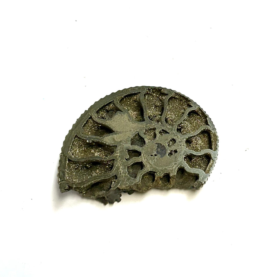 Considered one of the most collectible types of Ammonite, Pyritized Ammonite is a Ammonite fossil that has undergone pyritization where Iron Pyrite replaces the Ammonite's shell structure cell by cell. It is a form of fossilization that results in a beautiful shine and gleam as seen in this example.