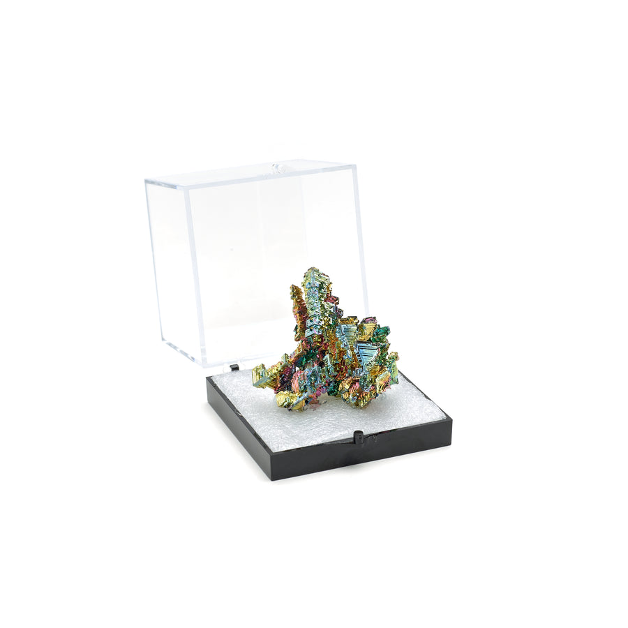 • Bismuth crystals grow in an odd, staircase-shaped formation due to a greater growth rate on its outside edges than on the inside.