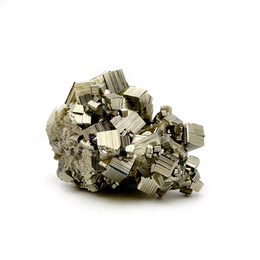 Prized since antiquity for its warm, golden luster and similar appearance to gold, Pyrite has earned its spot in many collectors’ displays. The mineral gets its name from the Greek, meaning “of fire,” for its ability to create sparks when struck against steel.