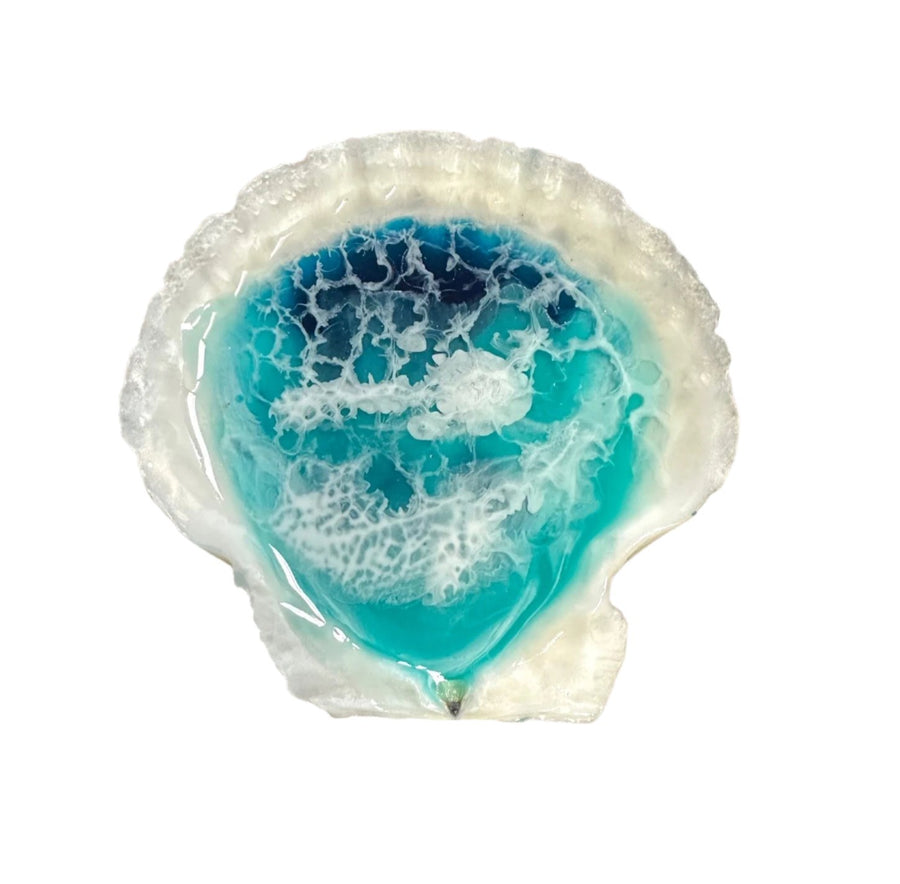 Add a touch of unique beauty to your home with our hand-poured resin Real Shell Magnets. This technique creates a stunning blue ocean with white waves, making each magnet one-of-a-kind. Handmade in Houston, Texas, these magnets are sure to inspire and delight.