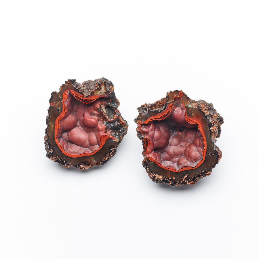 The rich red coloring found in the iconic Red Fox Agate comes from red hematite (iron oxide) encased in the Agate layers. The bold red against the dusky mauve Agate is just one of the many reasons collectors adore this rare and unique variety. Red Fox Agate is a relatively new discovery, having been found in 1997, originating from the Miocene epoch Cordón Cabezón volcano complex.