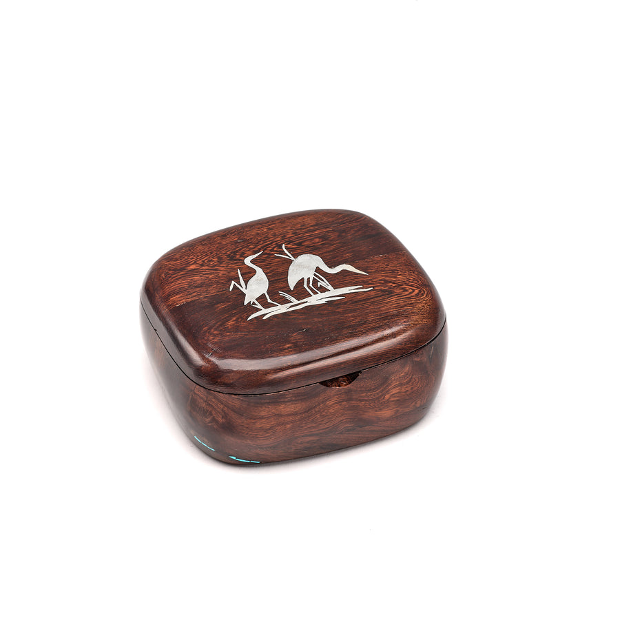 Artist Larry Favorite was a mechanical engineer on the fast track for success in the business world back in the early 1970s when he decided to leave his business career to pursue a growing interest in art. Forty five years later, Favorite continues to work exclusively with desert ironwood which is only found in the Sonoran Desert in the American southwest. Some of this rare wood has lain dead in the desert between 200 and 1,500 years. Favorite inlays turquoise into the wood as seen in this exquisite piece.