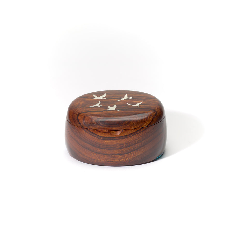 Artist Larry Favorite was a mechanical engineer on the fast track for success in the business world back in the early 1970s when he decided to leave his business career to pursue a growing interest in art. Forty five years later, Favorite continues to work exclusively with desert ironwood which is only found in the Sonoran Desert in the American southwest. Some of this rare wood has lain dead in the desert between 200 and 1,500 years. Favorite inlays turquoise into the wood as seen in this exquisite piece.