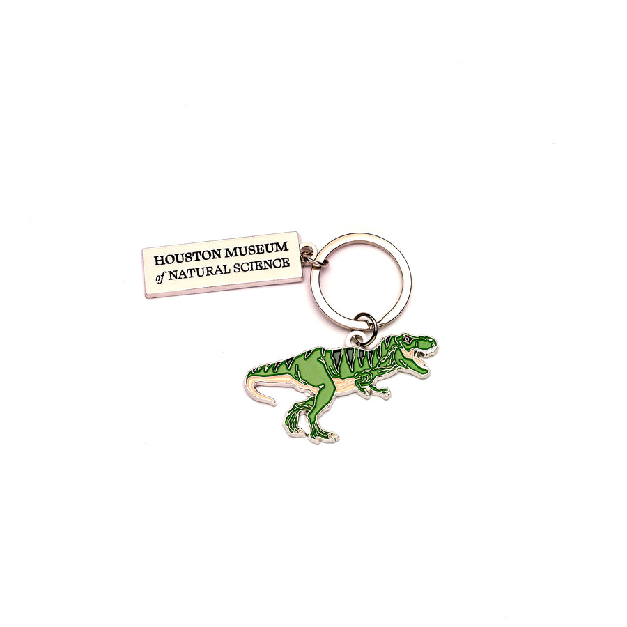Hold on tight to your fierce HMNS T. rex Charm Keychain! Our intrepid prehistoric pal is crafted from green enamel and ready to take a bite out of boredom. His sharp teeth and no-nonsense attitude will have you feeling secure in any situation. So, don't be a fossil, get your very own HMNS T. rex Charm Keychain today!