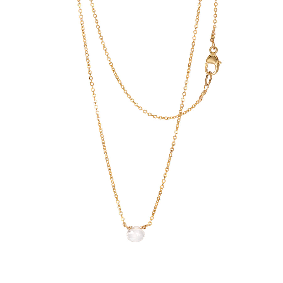 Her jewelry is handmade in her studio in Los Angeles and uses 14k gold vermeil for her chains.