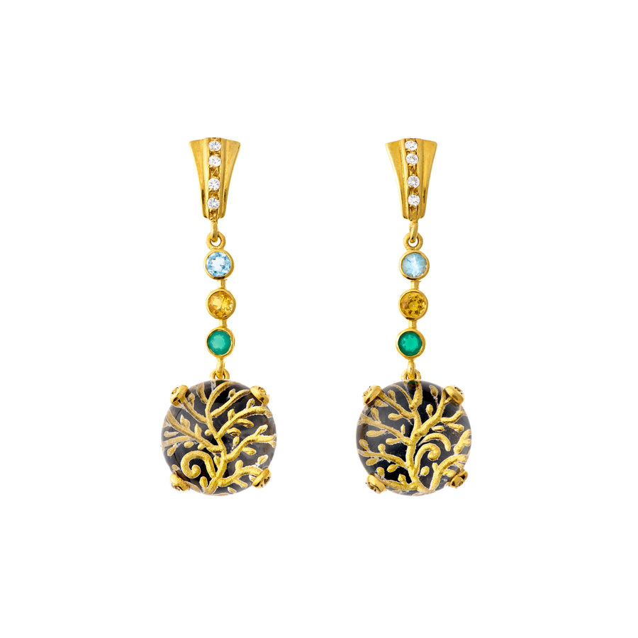 Colorful Gemstones & Topaz Engraved "Branches" Earrings