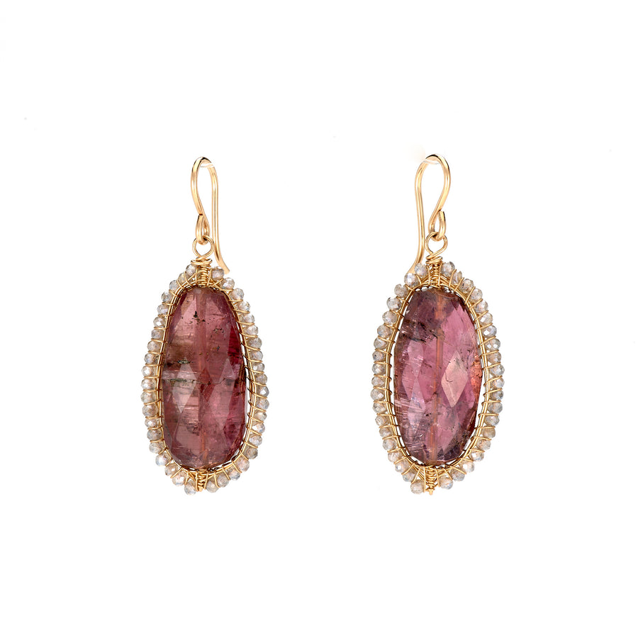 Garnet Earrings with Labradorite Beads