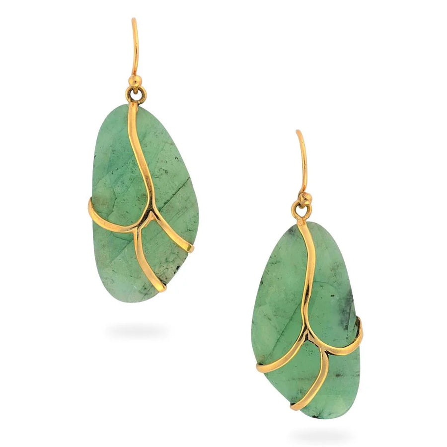 These one-of-a-kind earrings feature bright Emeralds against rich yellow gold. This butterfly wing is forever etched in time as it moves and sparkles in the light whenever the wearer turns and nods their head. Allow yourself to be swept up in the grace of these earrings, and appreciate both Rachel Atherley's and mother nature's work.