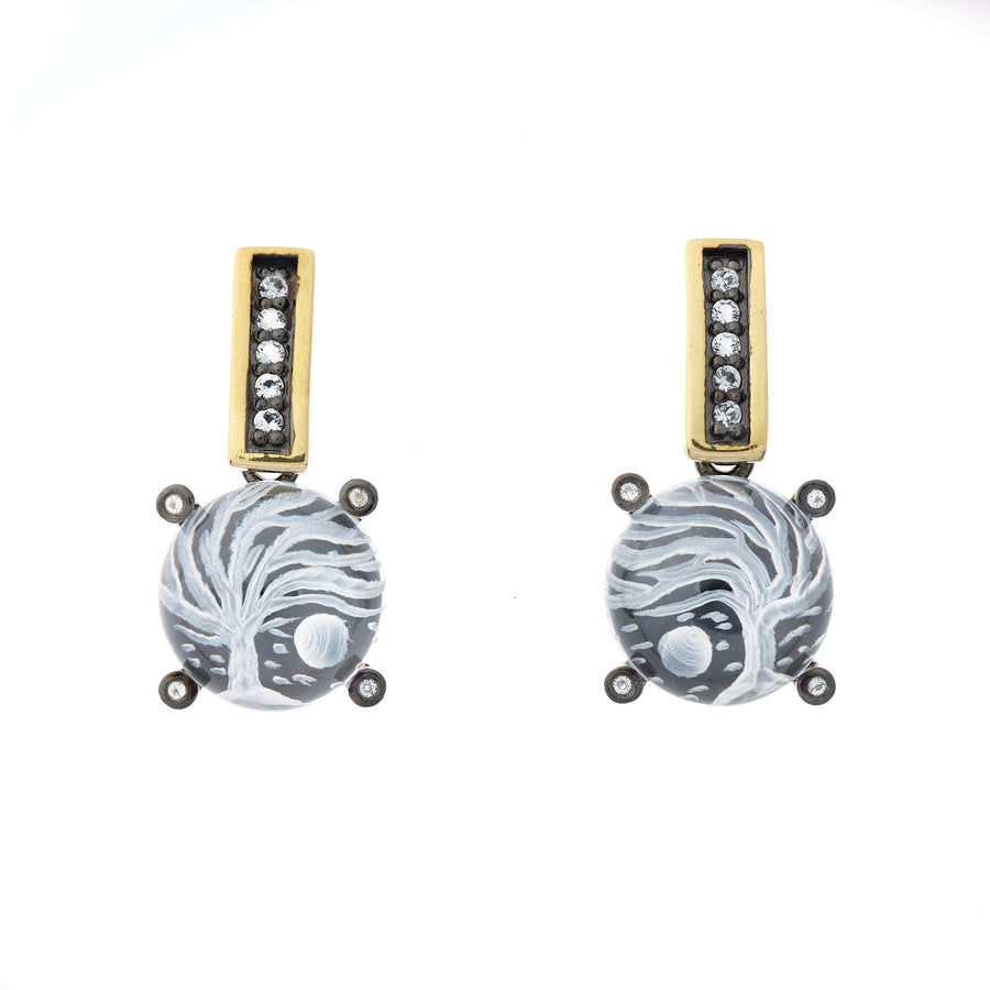 White Topaz & Rock Crystal Engraved "Tree" Earrings