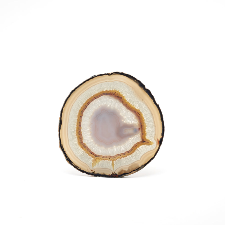 Agate is a form of quartz known for its circular banding. It forms in layers over millions of years as groundwater with mineral impurities drip into empty spaces in volcanic and metamorphic rock. The different colors in the layers are due to different concentrations of minerals that form that layer. If you look at geodes, you’ll notice that the base or outside of the geode is composed of agate.