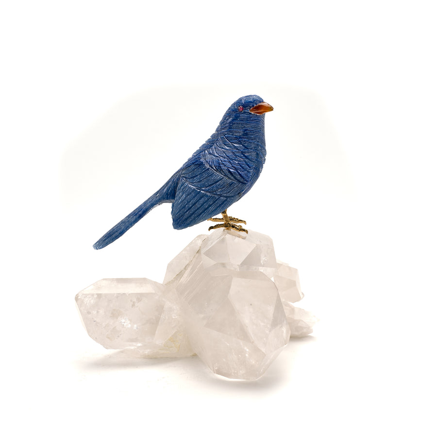 Apatite Sparrow Carving on Quartz