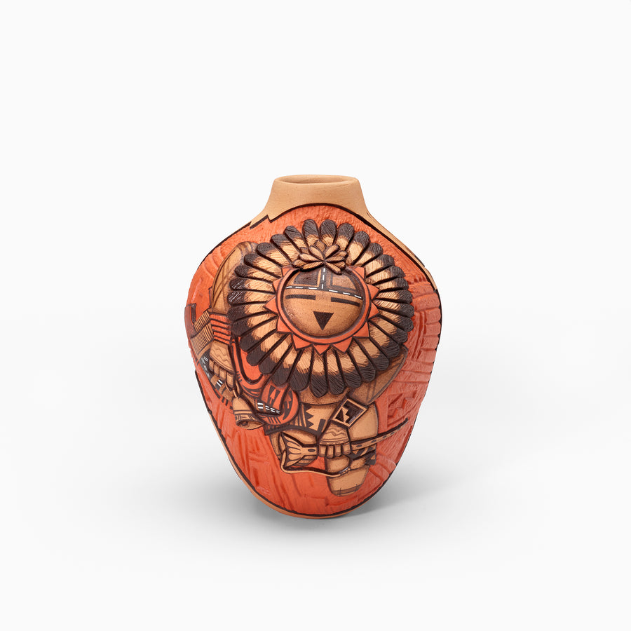 Carved Redware Sunface Kachina Pottery - Marty & Elvira Naha