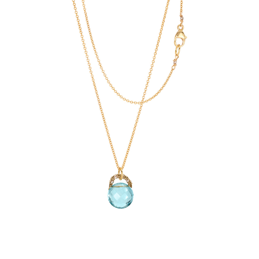 Her jewelry is handmade in her studio in Los Angeles and uses 14k gold vermeil for her chains.