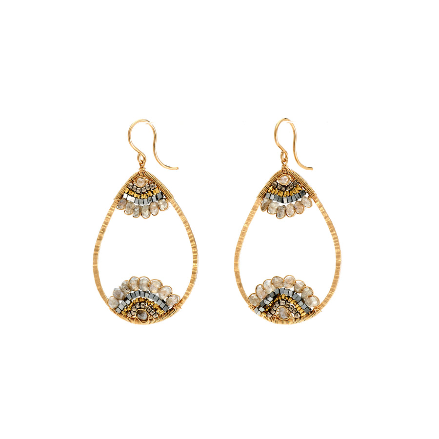 Dana Kellin is inspired by ancient and historic jewelry techniques and forms, such as the Byzantine focus on gemstones and the use of filigree in Victorian jewels. Dana distills these aesthetics with her delicate and intricate 14k gold fill wire wrapped gems.