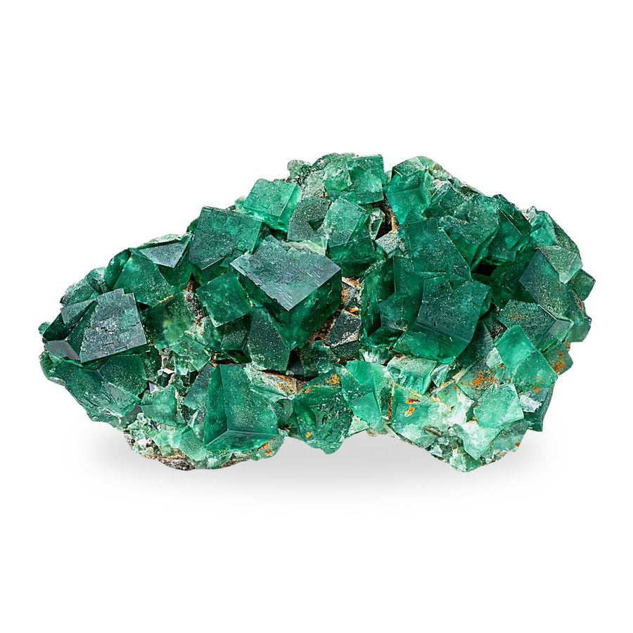 This English Fluorite is front he Cousin Jack Pocket of the well-known Rogerley Mine in Durham, England, wherein the Weardale valley is one of the most recognizable locality due to its vibrancy. Many of the pieces from the Cousin Jack Pocket are brilliant and rich shades of green- in fact, when this verdant Fluorite was first found in 1818, miners initially thought they had found Emerald.