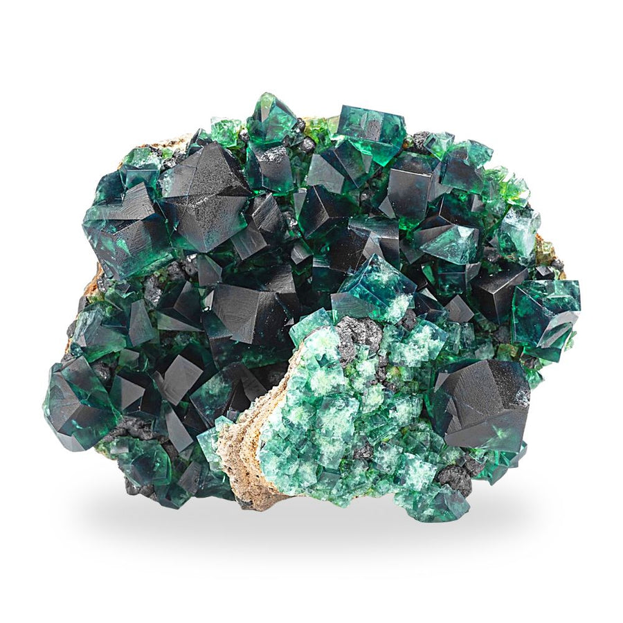This English Fluorite is front he Cousin Jack Pocket of the well-known Rogerley Mine in Durham, England, wherein the Weardale valley is one of the most recognizable locality due to its vibrancy. Many of the pieces from the Cousin Jack Pocket are brilliant and rich shades of green- in fact, when this verdant Fluorite was first found in 1818, miners initially thought they had found Emerald.