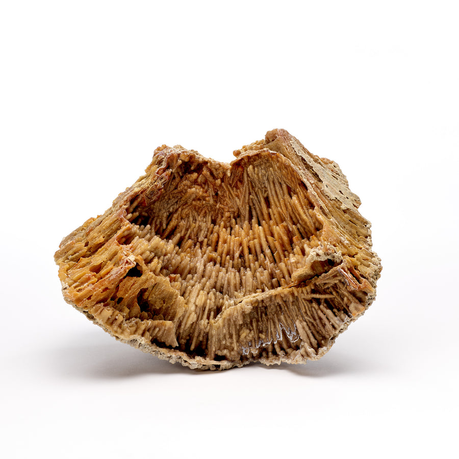 Fossil corals were simple marine invertebrates that possessed a sac-like body called a polyp with a mouth and stinging tentacles. As carnivorous animals, they would immobilize or kill their prey with their tentacles and then swallow them whole. Their dense outer skeleton was composed of Calcium Carbonate which would allow them to become a massive structure.