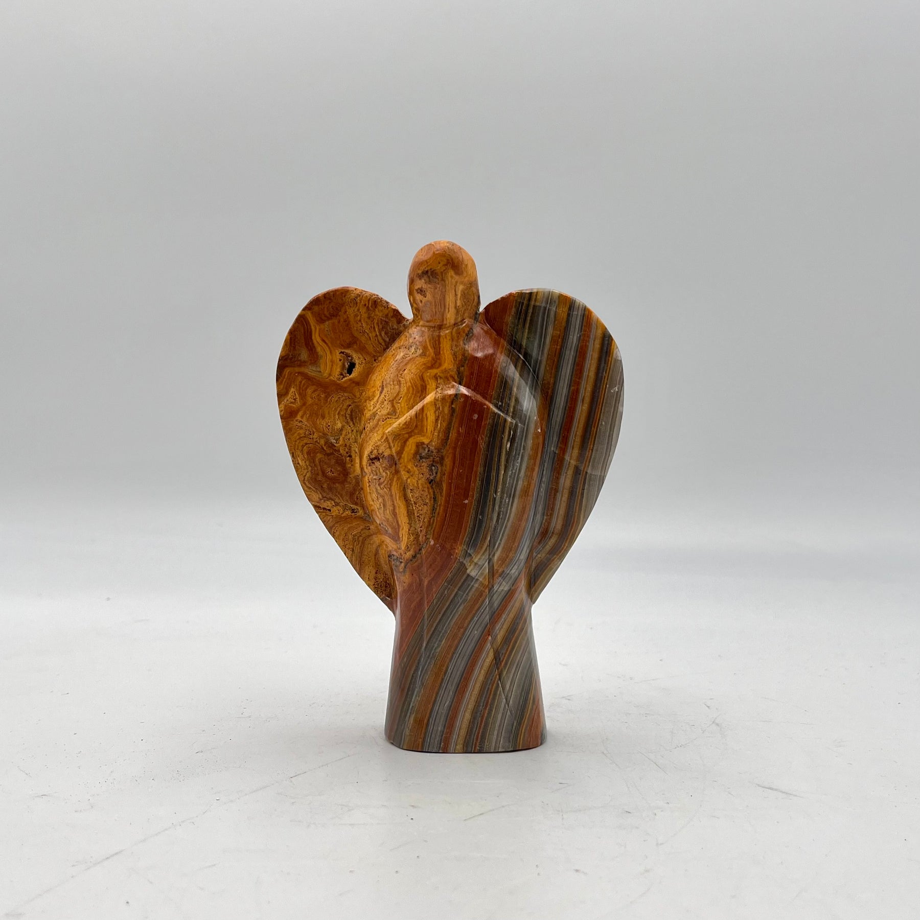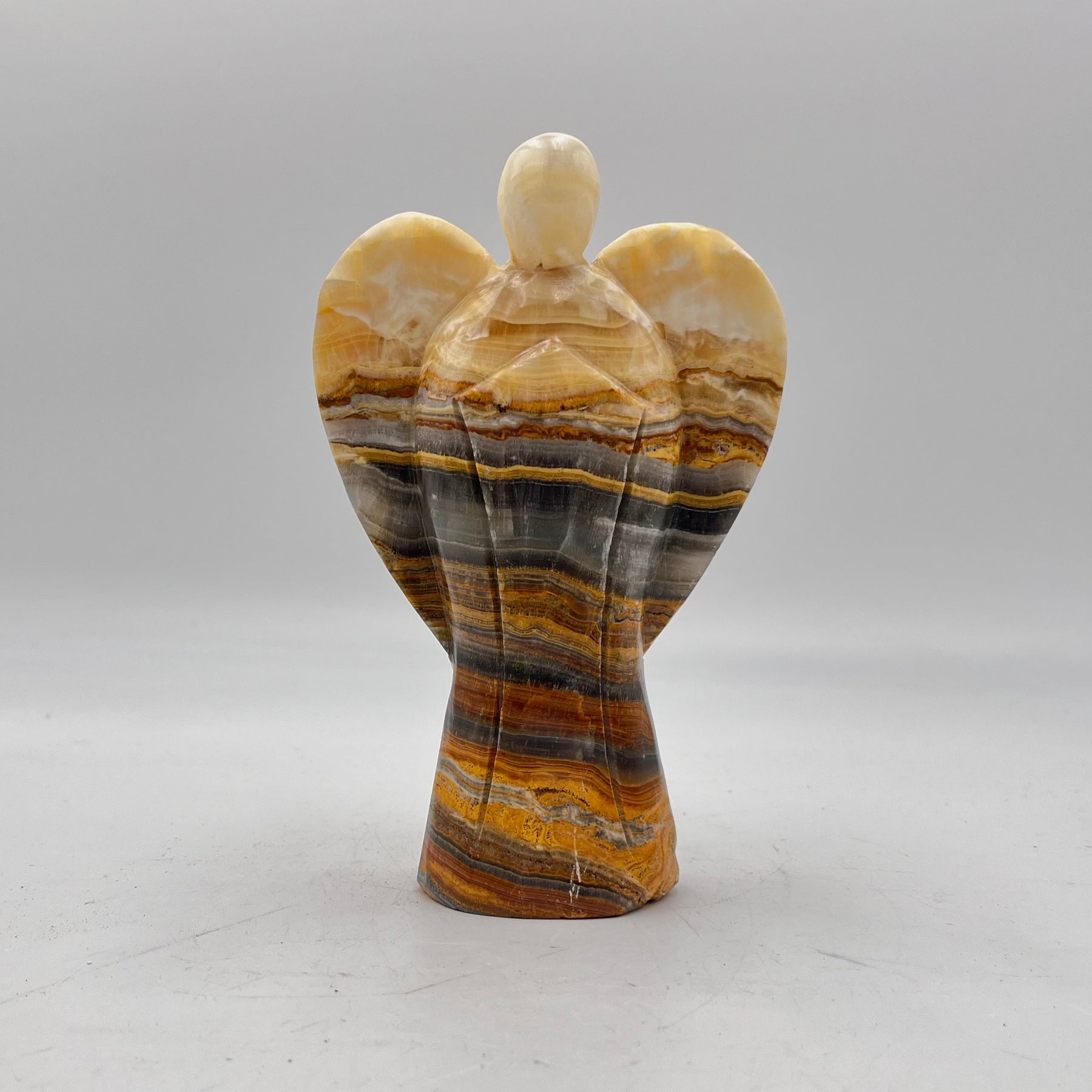 Due to the nature of onyx and the hand-carving technique, size and pattern of the Angels may vary. These Angels measure to be approximately 6 inches tall.