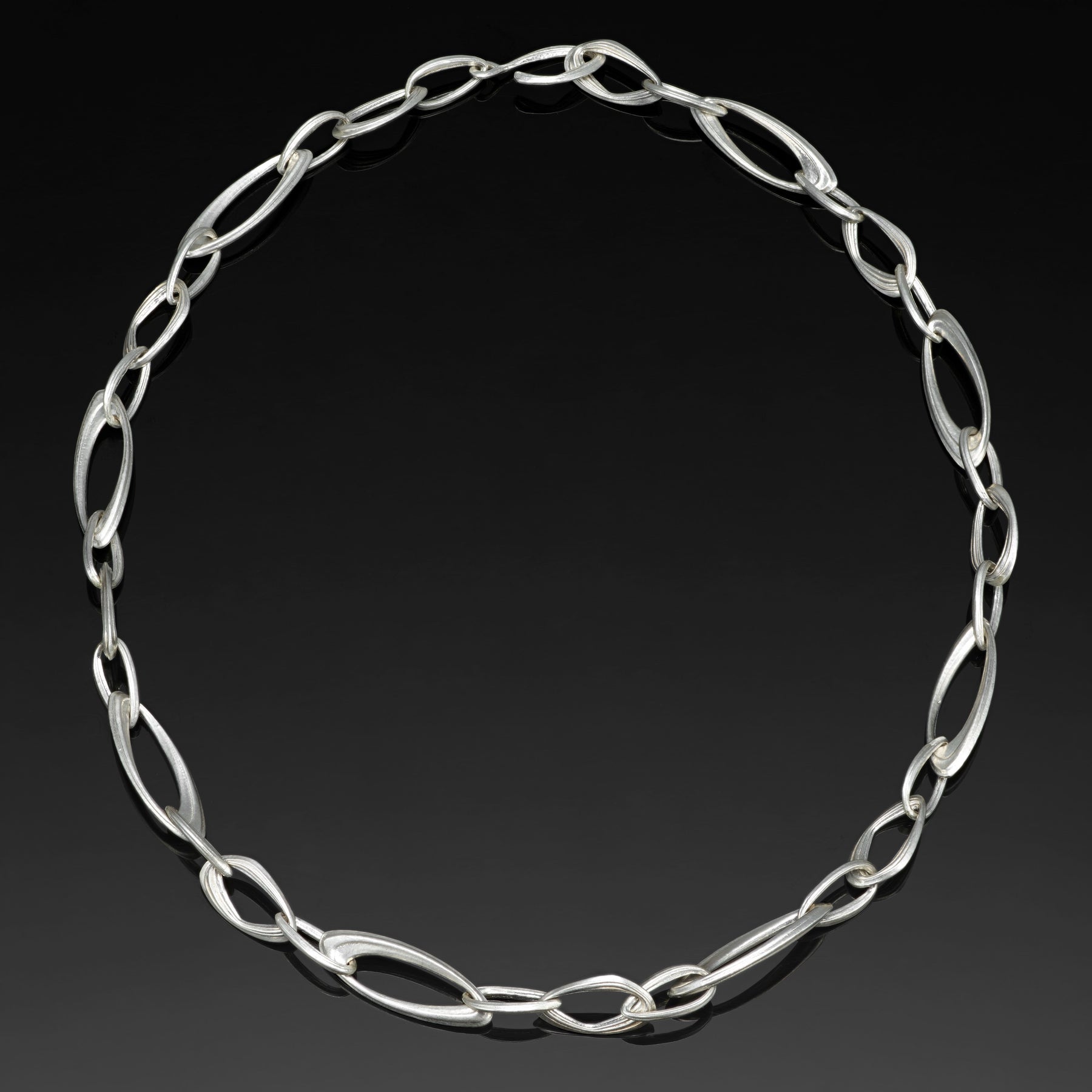 Inspired by the Azores Island chain, the forms of this satin finished sterling silver chain evoke the terraced landscape of the Azores that wrap around beautiful crater lakes at the peaks of the volcanic islands.