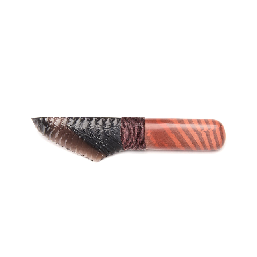 Zebra Stone Knife Handle with Double Flow Obsidian Blade
