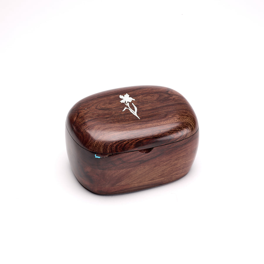 Artist Larry Favorite was a mechanical engineer on the fast track for success in the business world back in the early 1970s when he decided to leave his business career to pursue a growing interest in art. Forty five years later, Favorite continues to work exclusively with desert ironwood which is only found in the Sonoran Desert in the American southwest. Some of this rare wood has lain dead in the desert between 200 and 1,500 years. Favorite inlays turquoise into the wood as seen in this exquisite piece.