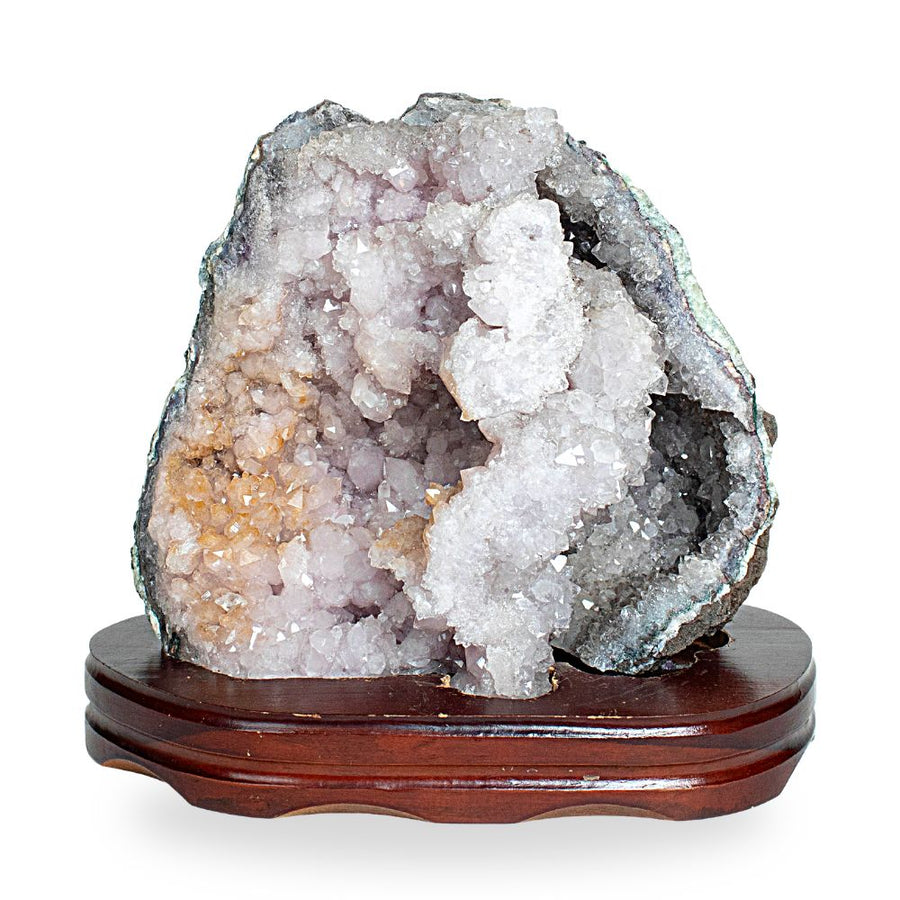 South Brazil is rich in minerals found in its mountainous basalt rock formations. Eons ago, as 2400 degree Fahrenheit magma cooled, pockets of gas became trapped in the magma. The pockets of gas later became hollow cavities in the solid, newly formed basalt rock. These hollow cavities became filled with super-hot mineral-laden ground water which resulted in layers of agate and quartz crystals forming inside. Miners in Brazil use hand tools to extract agate geodes from eroded mountain sides. For generations Brazilian miners have learned to cut the geodes in half, polish the cut surface, sides and some of the backs. The miners sell the worked geodes to collectors who enjoy their beauty and wonder.