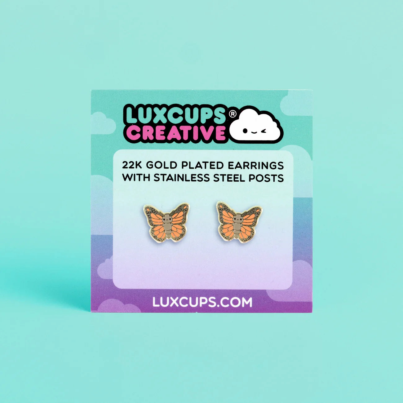 Bring a touch of nature's beauty to your everyday look with these charming Monarch Butterfly Stud Earrings. Featuring vibrant enamel detailing and luxurious 22k gold plating, these delicate studs add a playful pop of color whether you're heading to the office or out for adventure. Perfect for nature lovers and butterfly enthusiasts, these versatile earrings transition seamlessly from professional settings to casual outings. Lightweight and comfortable for all-day wear, they're an instant mood-booster that celebrates the wonder of one of nature's most iconic creatures.