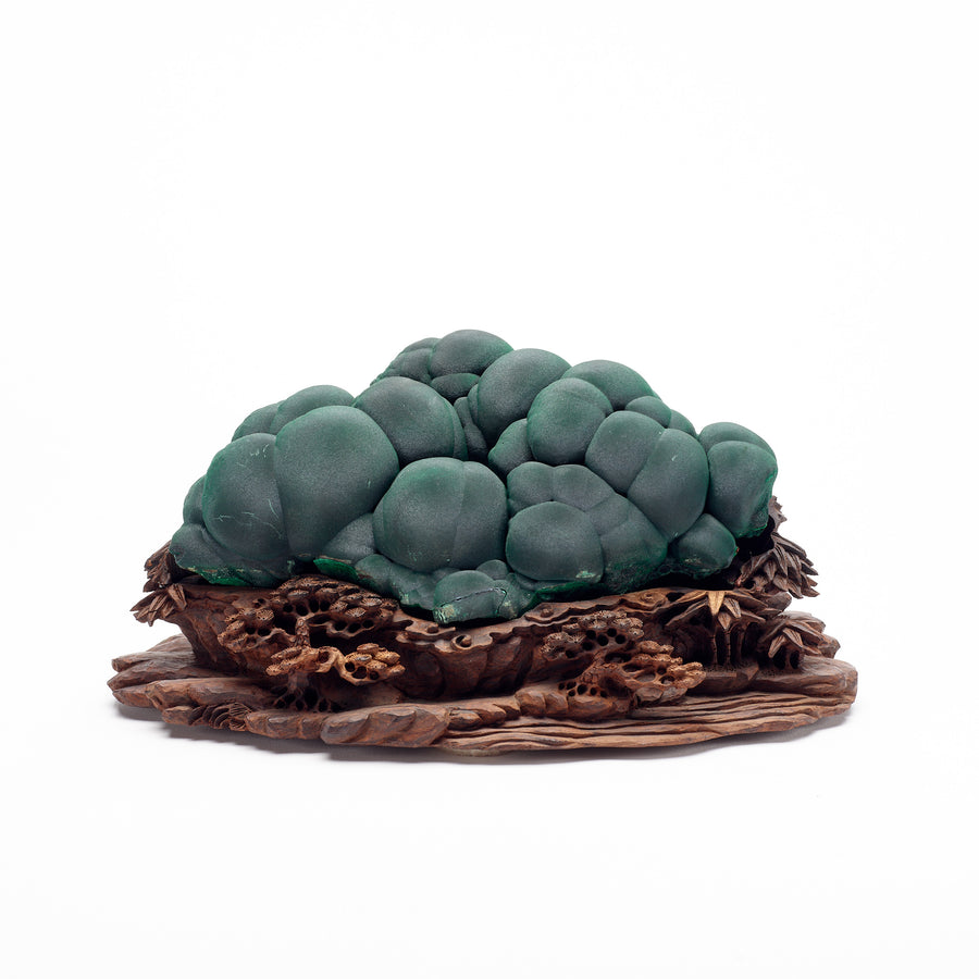 Velvety Malachite on Carved Wooden Base