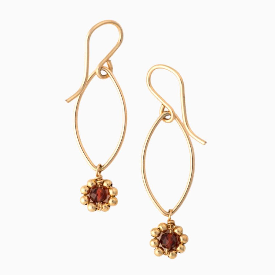 A touch of sophistication to your look with the Garnet Flower Earrings, featuring beautiful wire-wrapped garnet gemstones.