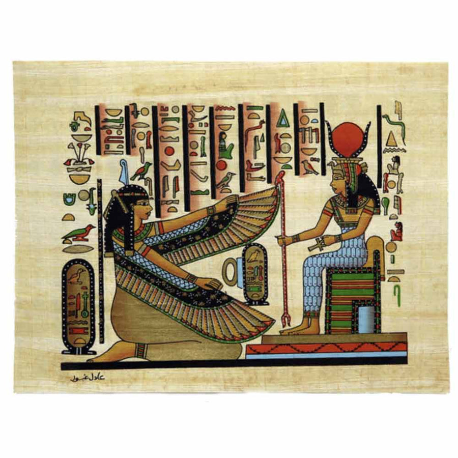 Hand-Painted Papyrus- Maat & Isis