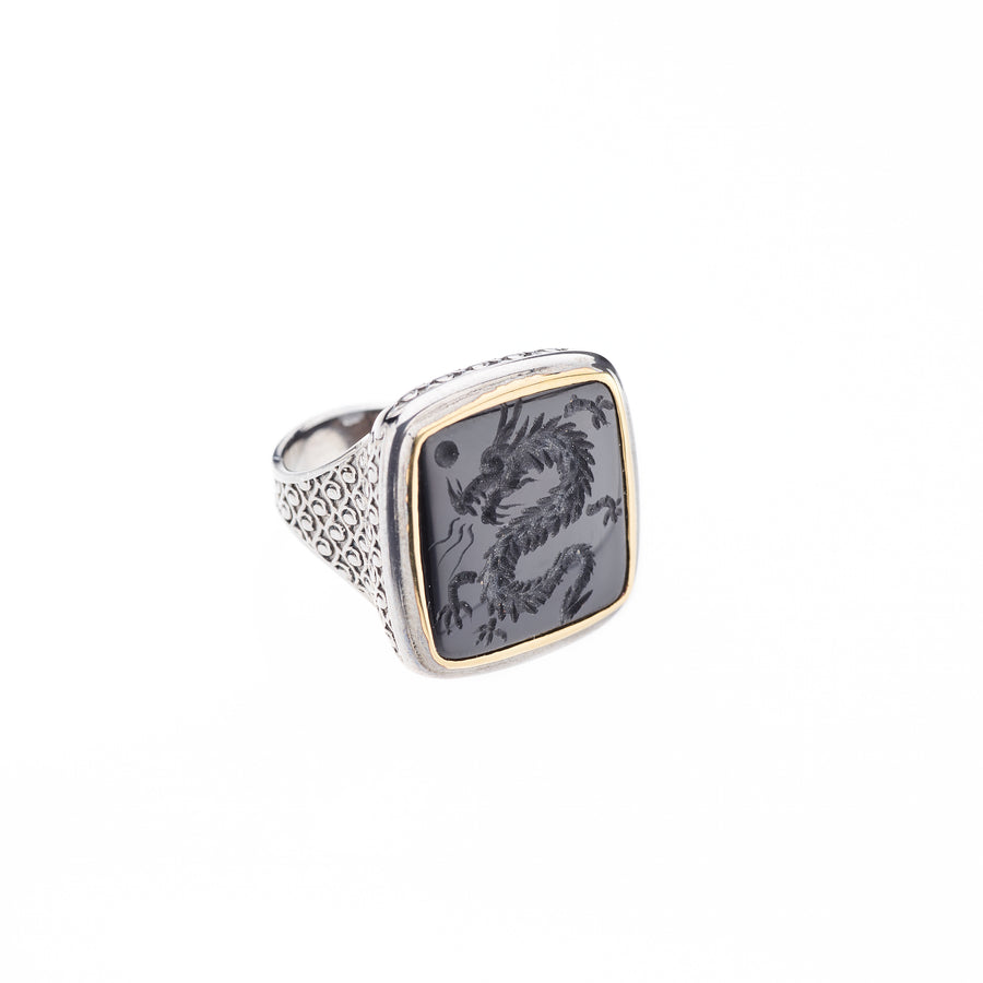 Engraved Onyx Dragon Ring