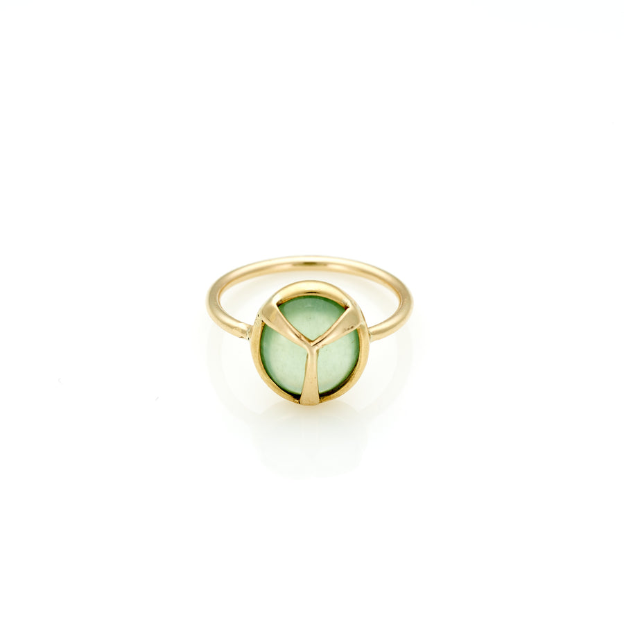 - Inspired by the Egyptian scarab symbol, this beautiful ring features a carved mint green Prehnite encased in 14k gold. This ring, like all of her pieces, was created in Rachel Atherley's NY studio.