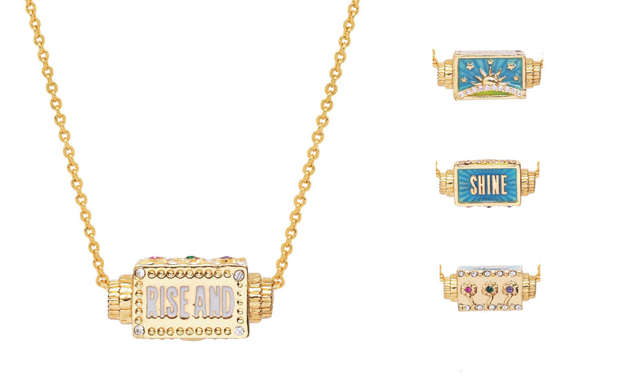 Start your day with a positive spin and a touch of beauty with our Rise and Shine Spinner Necklace. The spinning pendant with delicate flowers and a sunrise design is sure to inspire and energize you. A must-have for any fashionista looking to add a touch of positivity to their ensemble!