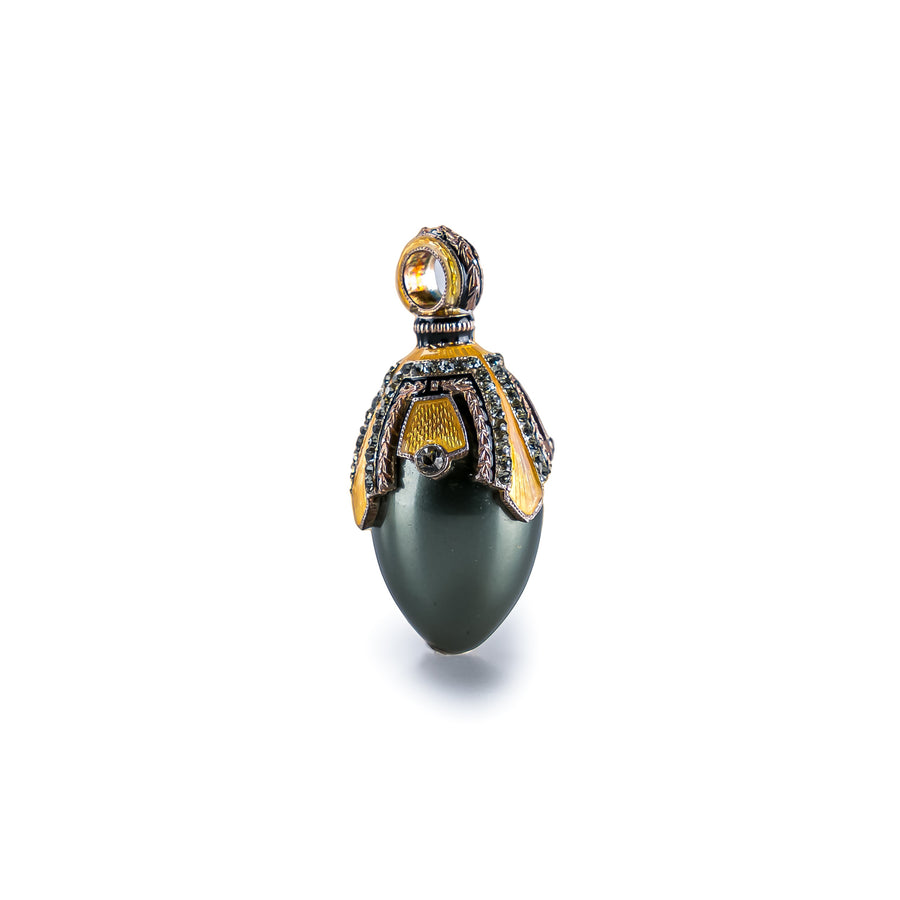 This Russian Egg Pendant is crafted from pewter, enamel, and hand-cut Austrian crystals, creating a timeless accessory of exquisite beauty. With elegant accents, polished finish and intricate detailing, it offers a timelessly elegant addition to any wardrobe.
